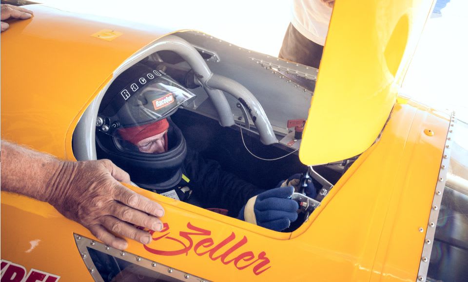 Behind me a yellow 1973 XA Ford Falcon rolls in. Unusually clean shaven, Dave tells me it used to be his dad’s car. On his first trip here in 1996 he blew it up. With 550 horsepower it got up to 265km/h. Then in 2010 he topped out at 323km/h. That was with an 800hp engine. This year with the power up to 1000 - an extra 200 horses - Dave averaged 347km/h on his two mandatory runs. “I’d like to hit 220 (mph – 354km/h), but I’ll need at least another hundred horsepower and some aero work on the body to go those extra four miles faster”.