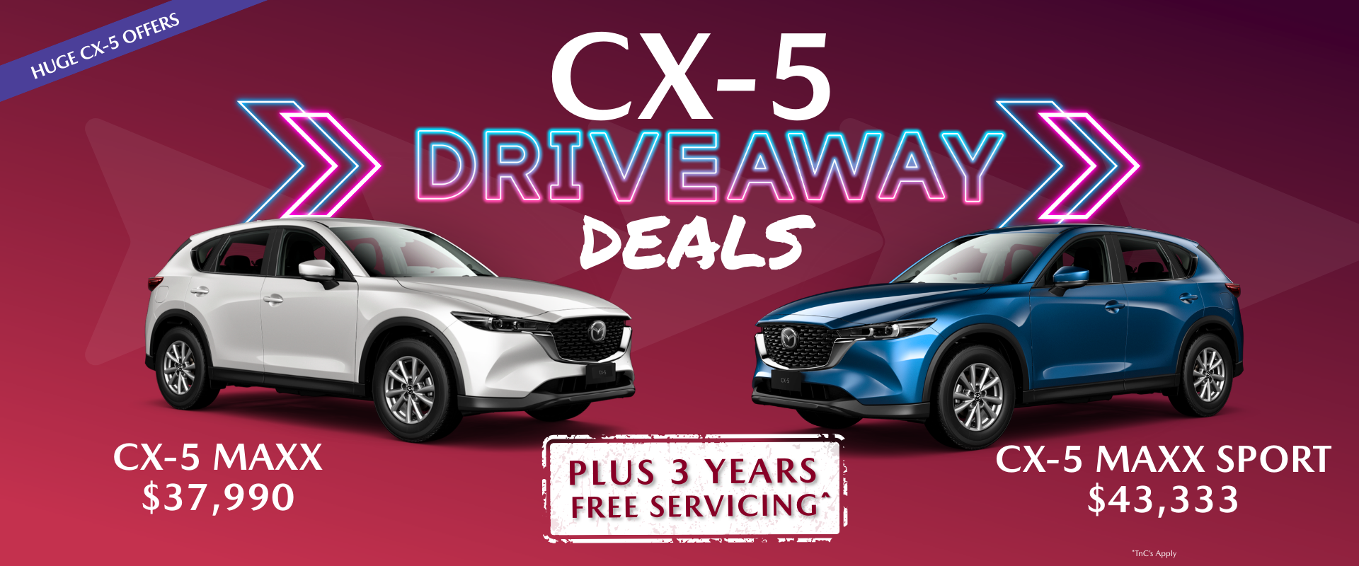 - CX-5 Maxx – from $37,990 Driveaway.