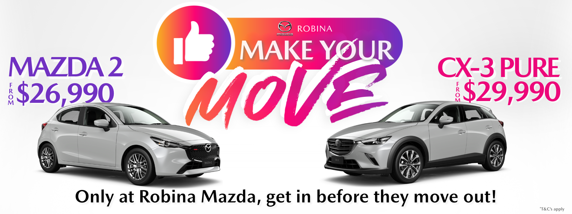 Now’s the time to make your move with unmissable driveaway prices on the stylish and feature packed Mazda2 and CX-3.